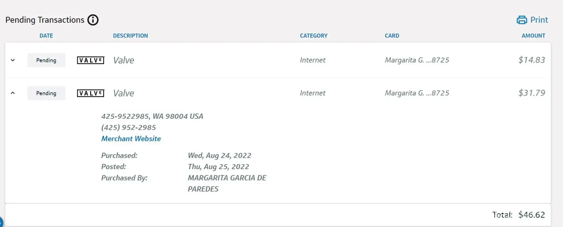 I have two charges from Valve into my mastercard credit card for $14.83 and $31.79. I have not authorized these charges and I do not even have an account with this Valve company.
