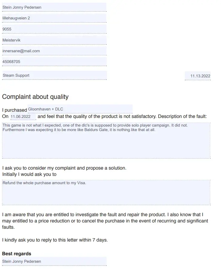 Desired outcome: Restructuring of Valve Customer Support, retraining of support agents and stopping to deceive customers purposefully.