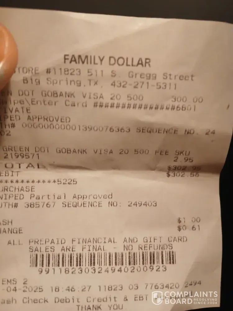 Got a giftcard in november 2023 from my work for $400 activated it and used it one time for $50. Went to use it again and it was declined. Got on to check balance and december 6th 2023 it was used in a different state for the remaining $350 at a target store. I filed two different disputes and sent proof of receipt. We are now in march 2024 and I still yet...