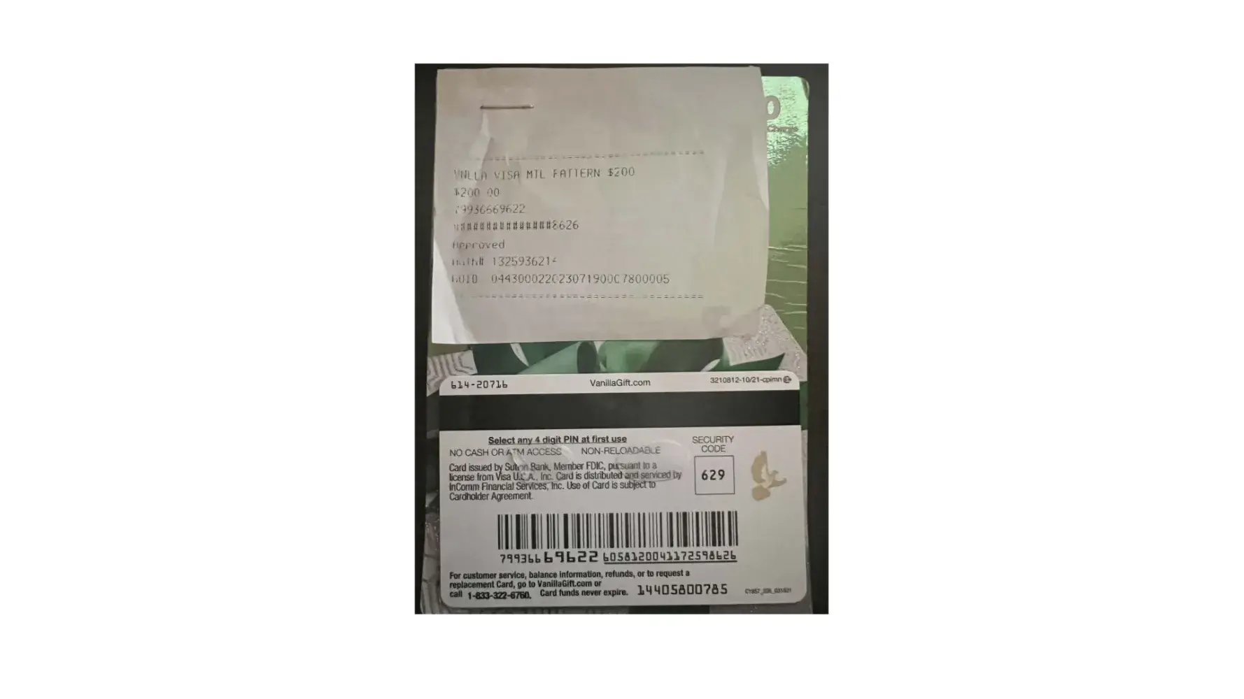 [protected]. You speak with a person who is from "card services" and the company was Incom (or something to that affect - was not clear and was not happy i was asking) and they want all kinds of personal information. I am reaching out to my in-laws who gave me the gift card to see if they still have the receipt or this person said they can get an electronic journal from the store they purchased.