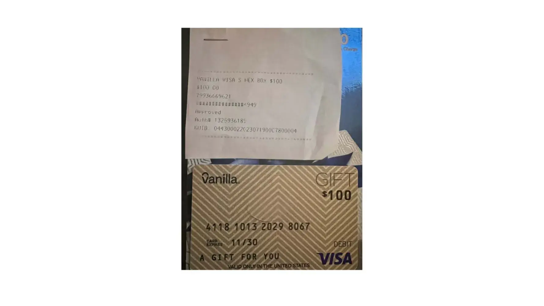 Vanilla Visa gift card.