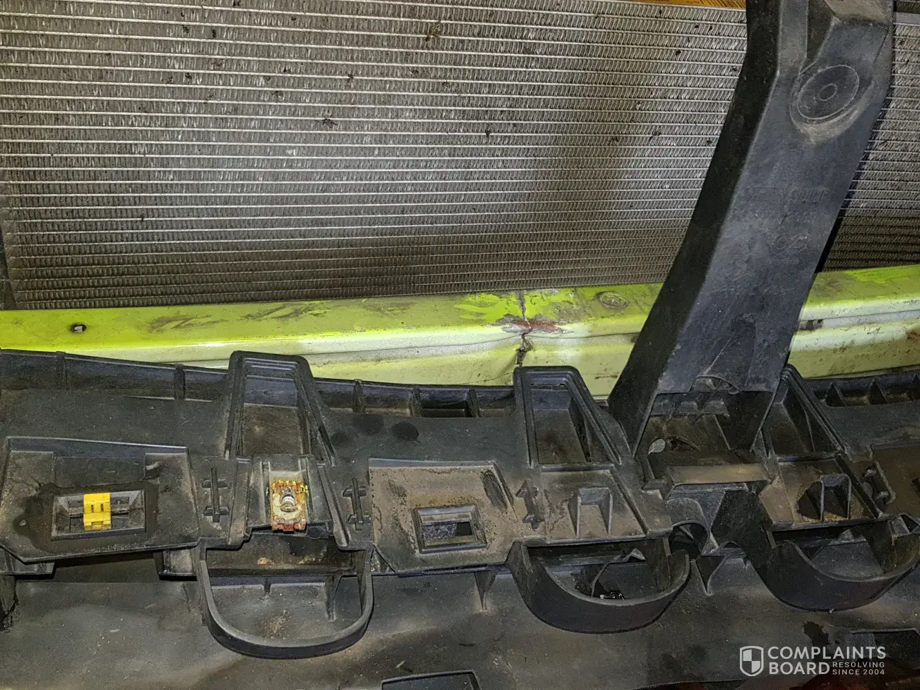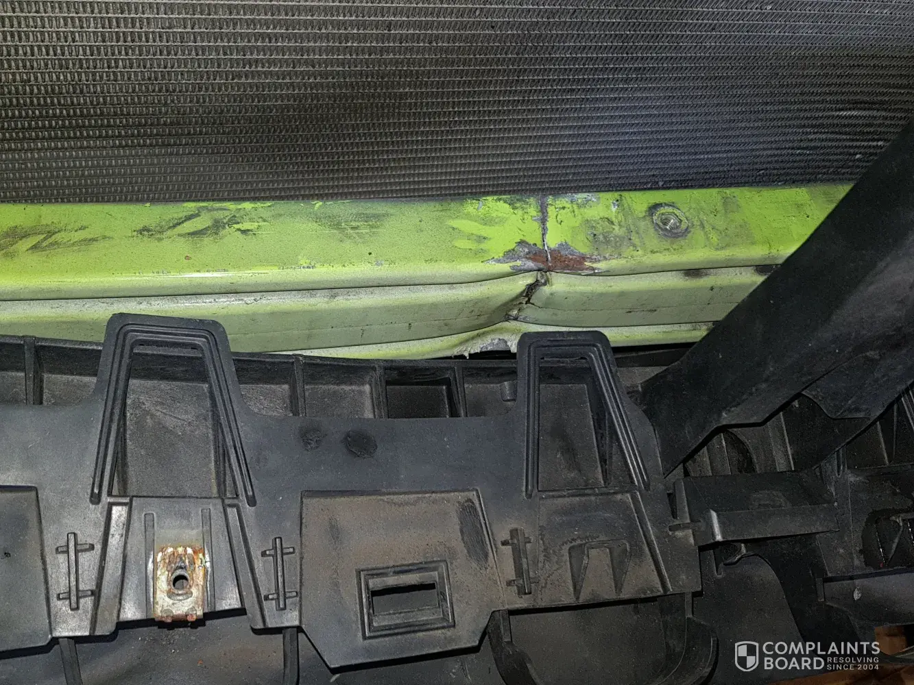Poor repair to the front side wing bumper.