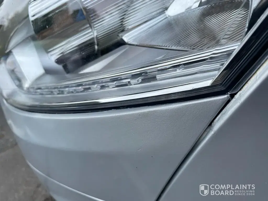 When I Went to purchase on 17th September I noticed the front passenger side head light was raised and out of alignment front damage to the bumper had a bad repair and see the bumper and back Quarter lights were a different colour and had tried to repair resprayed poorly with runs in the paintwork. I also pointed out the front breaks and pitting to the disks.I was told this would be put right and they would give me a full tank of fuel so I accepted they would correct the paintwork and also the front breaks.so it was booked it for 22.09.21 and to collect 25.09.21.