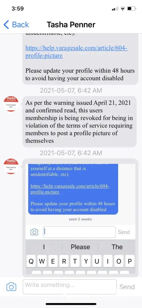 Tasha Penner banned me because I had to make a new account as I lost my email account associated with my old account, I explained I can't recover the password and I was banned from the Calgary page. She previously banned me on my previous account because I accidentally posted a duplicate listing. A few friends have been banned for less from this same admin. She is very rude, not easy to deal with and will not help you in any way, she just patrols VarageSale like she is a supercop. On Facebook there was a post by someone about her and how she treats people which was not surprising, many people have left VarageSale simply because of her.