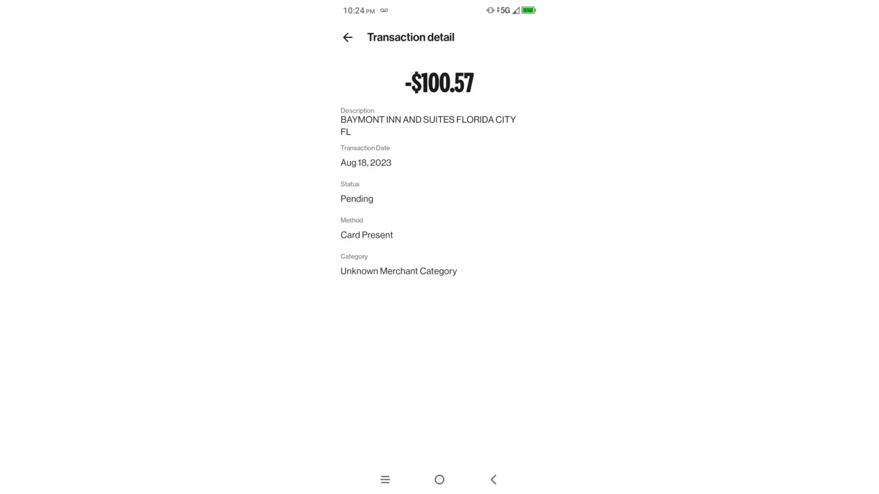 I went to the hotel paid with my varo believe card and the next morning they said it didn't go through that it was to be reversed well I waited to see it's still pending in haven't received my money back I end up paying twice $100.57 at the Baymont inn and Florida city I paid cash for the payment they said to be reversed and the card transaction still shows pending. I need that to be returned to me