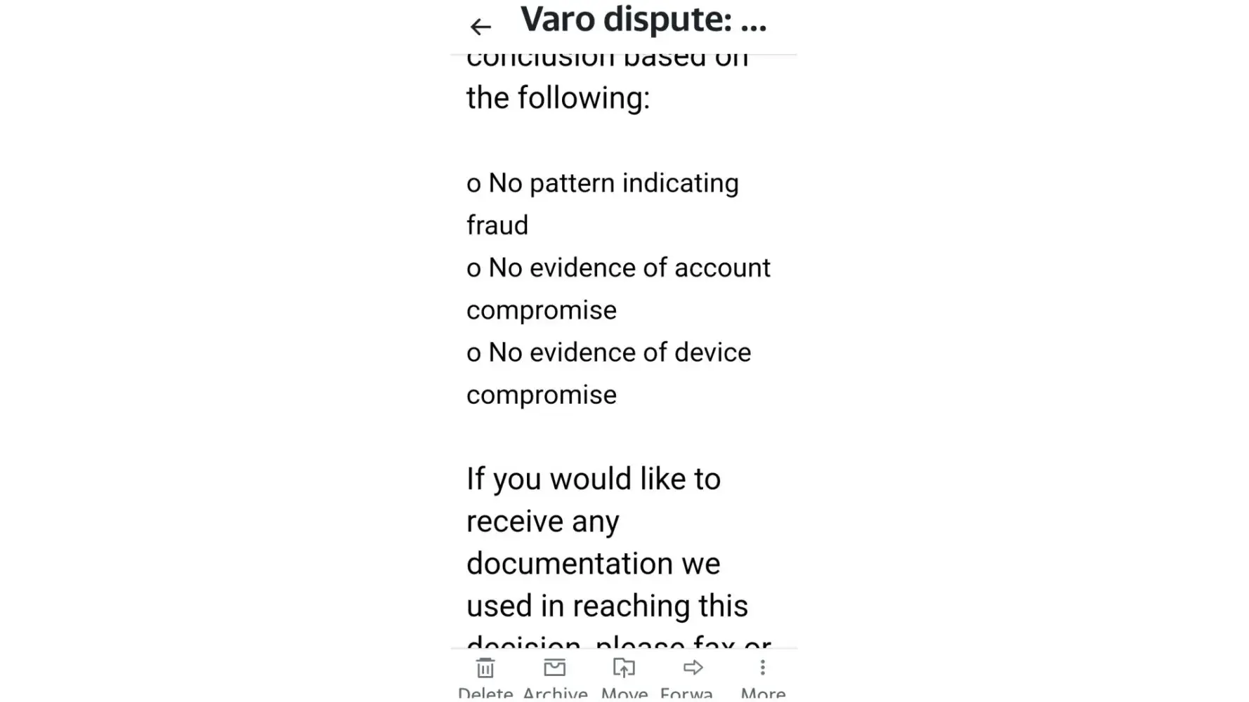 I immediately called Varo and filed a claim. Two days later received a response saying that their investigation was complete and they found no error and my account was being irrevocably terminated.