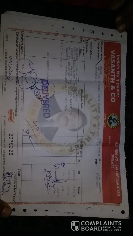 So that i went to Kumbakonam - Mothilal street Vasanth & CO, Raised the Complaint they said - Service will be send to your home .