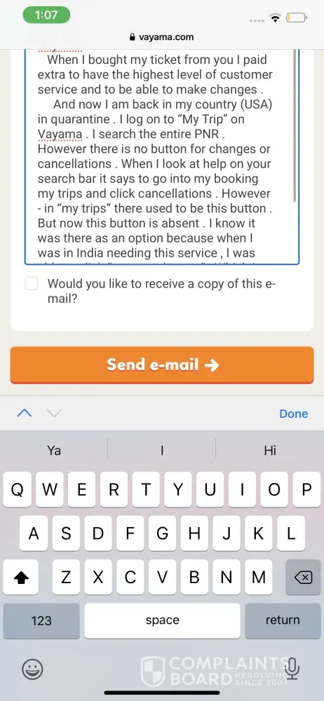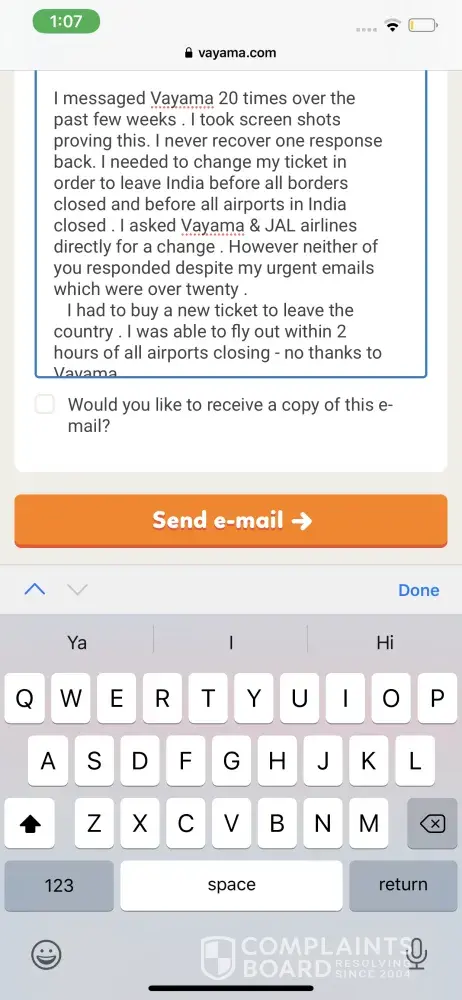 I took screen shots of twenty or so times I contacted Vayama since the middle of March 2020.