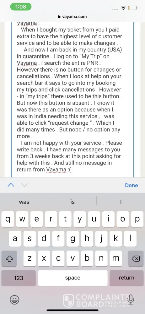I was left stranded in India because of Vayama. It was a horrible experience to be stuck in a foreign country with no help from a company that I paid extra for at the time of making my reservation so blind. I paid extra for in for in case that I needed to cancel or change my flight. I had to buy another ticket becuse you would not help me change mine.