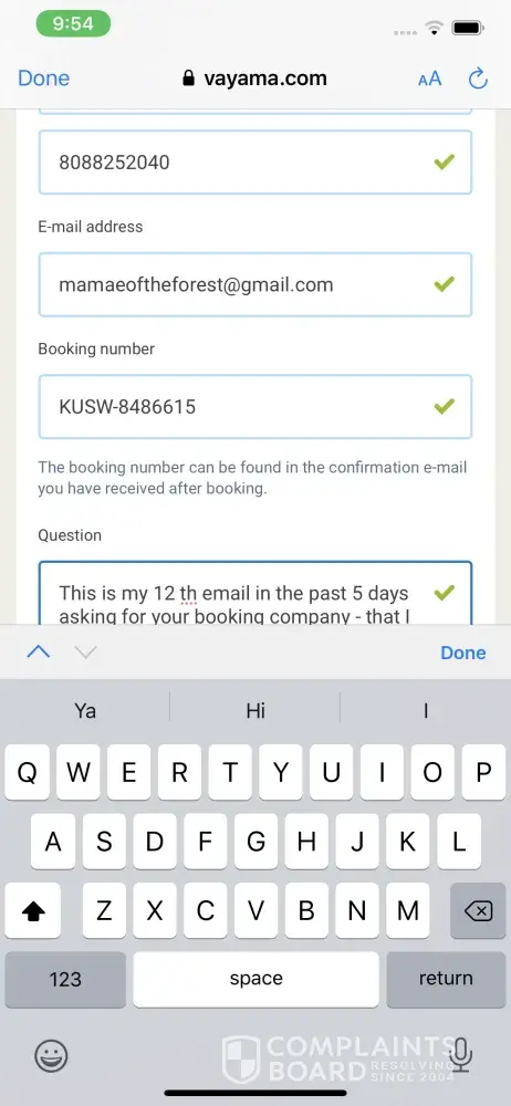 - Tried calling Vayama to start process to get refund - got voicemail saying they won't answer phone calls.