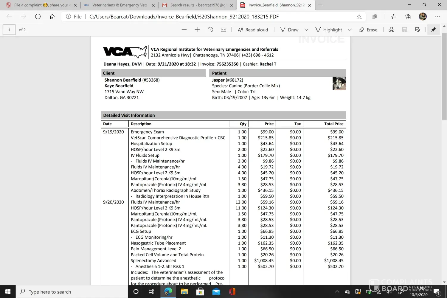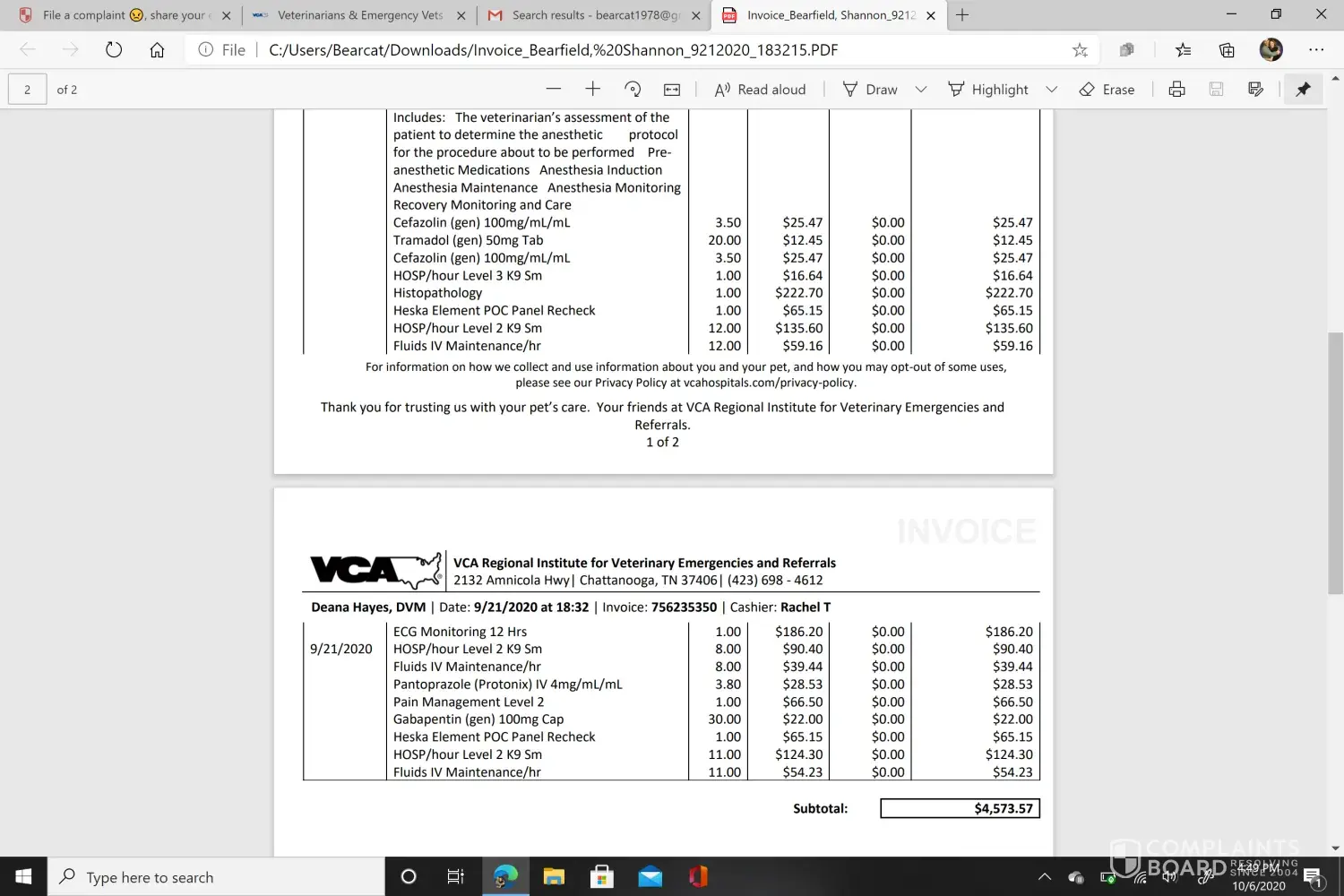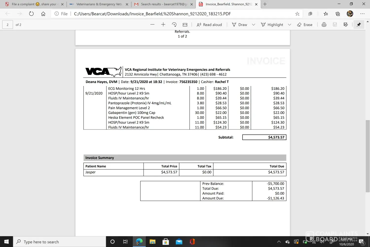 Veterinary service at vca emergency albuquerque 4/30/21 - 5/2/21