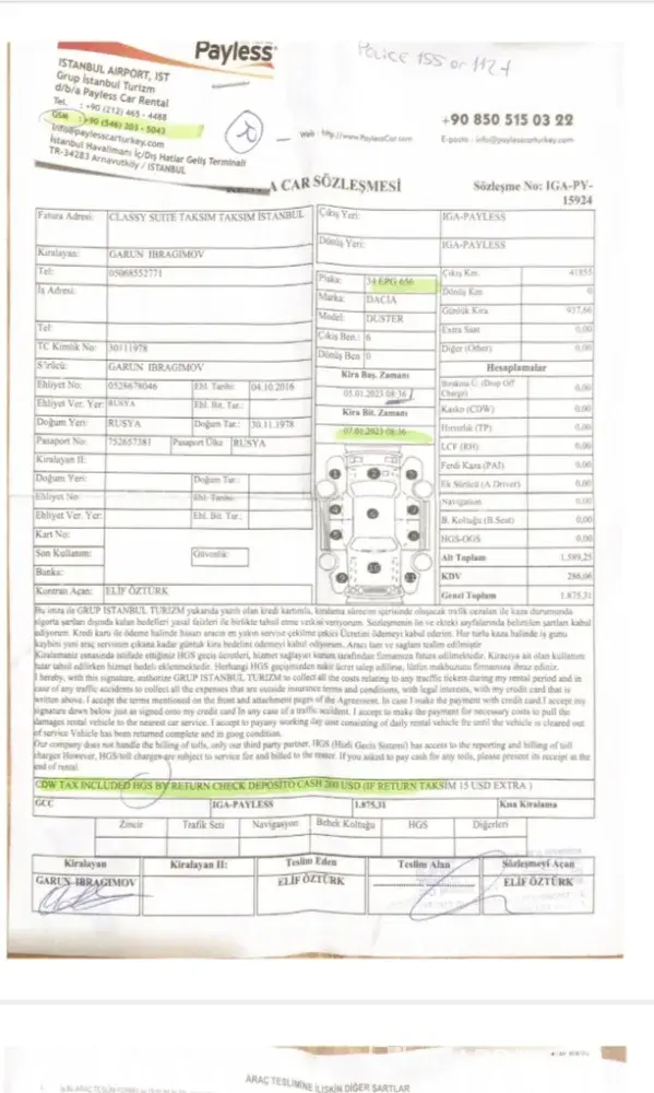 We rented a car on January 5, 2023 at 08.50 at Istanbul Airport, and the rented car gave back at the office in Taksim! I'm asking the company's security service to conduct an internal investigation if the company values ​​its reputation! There are scammers in the Taksim office in Istanbul! Purposeful scam! The police were called to draw up a protocol...