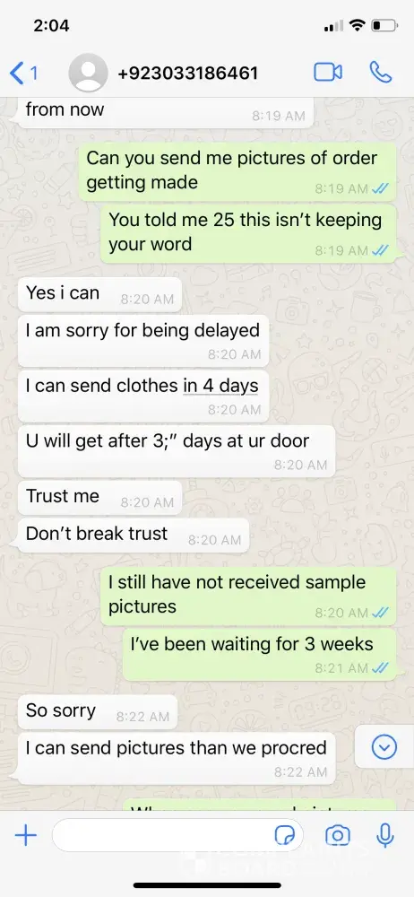 I ordered 70 dickies suits sept 30, he called me everyday to send him the money for order and when I sent it I barley heard from him here it is November 24, he said he can make clothes in 8 days and I still have not received any goods and I'm out of 2, 100 dollars. Do not purchase from this company do not keep his word he is a scam. Only care about himself.