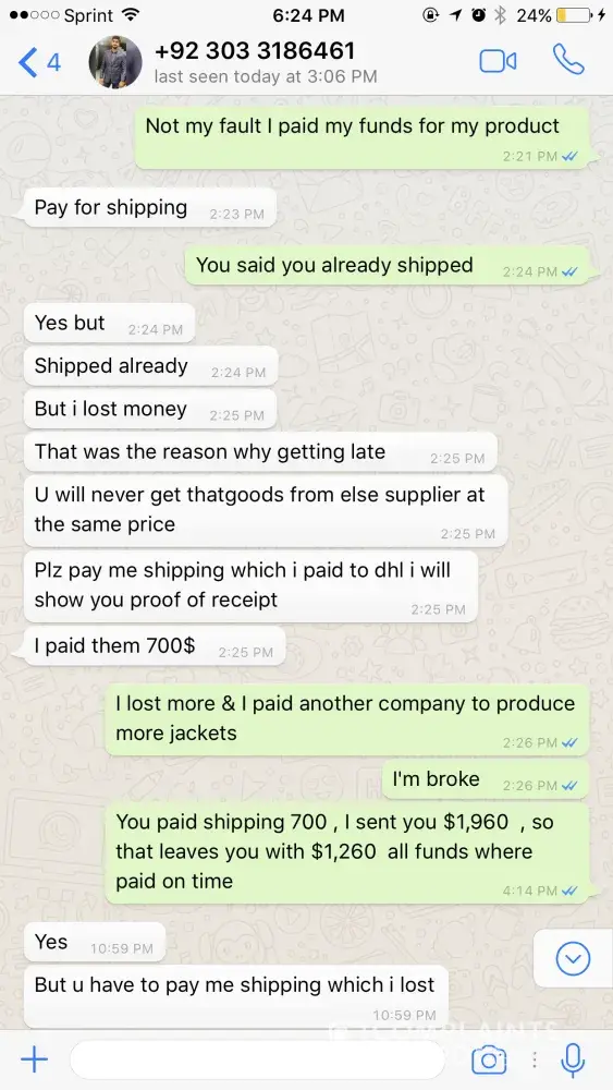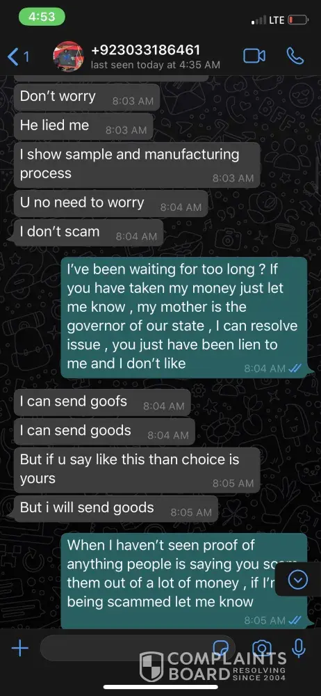 This company number is [protected] I have What’s app messages to prove it and Alibaba.com messages