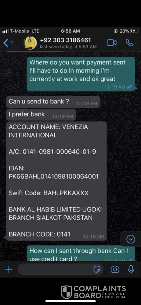 I have proof where this company stole my money and never send me the merchandise. do not do business with this company! noman javed is very dishonest. nothing he said in his add are true. let everyone know. pass the word around not to do business with him or his company venezia. an investigation is being conducted about him. I sent him $510 dollars for tshirts, but he stole my money and never deliver the tshirts. he's from pakistan and his name is noman javed iqbal