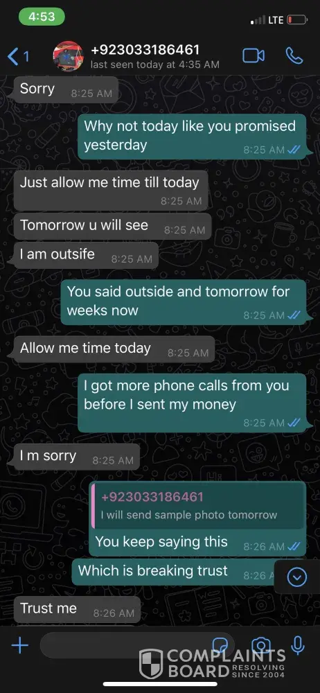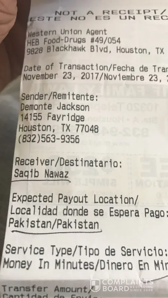 We do not know who are you may be you got mistake to fill complaint against us . We do not have any Saqib Nawaz in our accounts departments . Please check and make sure where you have paid this amount . We do not receive your any order or Payment . We only accept Bank Payments and PayPal, And Money Grams .