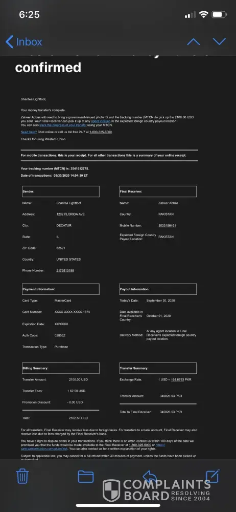 Perfect I currently have a lawyer handling it, whe're trying to get a defense representative in Pakistan where this company is located, if you could email me at demontej97@yahoo.com all your information so we can get this done as soon as possible, I really appreciate you for seeing this through !