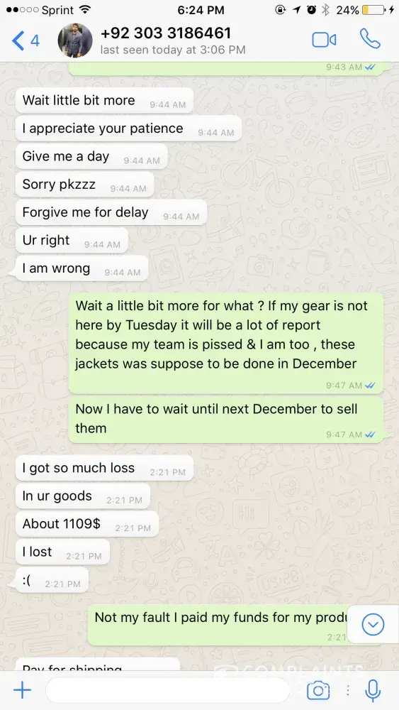 I paid $2, 000 for puffer jackets & hoodies, I asked for detailed pictures of my gear they responded saying hold on for about a week straight, I waited patiently for my gear to be shipped & I got a fake tracking number that shipped my gear all the way to North Carolina when I live all the way in Houston, Texas and was told be patient it will arrive to my door but my items never arrived this company is horrible & are for sure scammers they will have you pay & sell you a bunch of lies, I asked for a refund numerous of times ...DONT NOT DEAL WITH THEM !