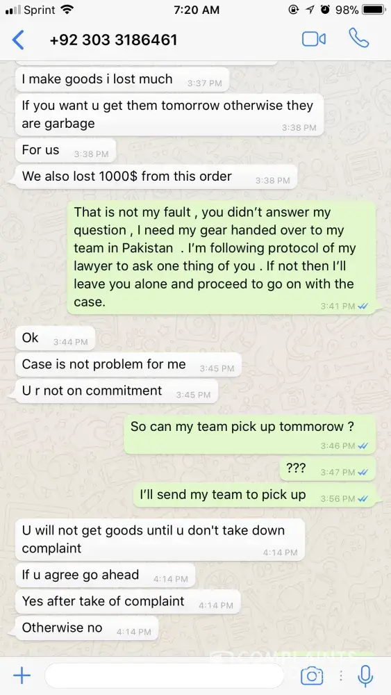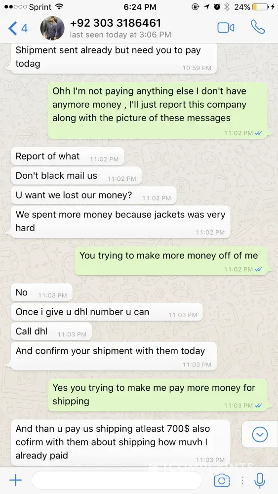 Ive now been waiting months for my gear which is 40 hoodies & 40 puffer Jackets, I paid $2, 000 Cash in November 2017 & this company refuse to ship my gear it is now March 2018, they've tried extorting me out of $700 for shipping & then took it down to $400, been threaten to take down my previous complaints or I won't recieve my gear. I have a team in Pakistan that's trying to retrieve my gear and ship to me but they refuse to hand over my gear that has my logo. Venezia International are crooks and liars. They have held my gear for months with my logo on them. I found them on Alibaba.com and there account is blocked so I can't make more complaints on Alibaba.com if you see this company do not deal with them. DO NOT send money to Saqib Nawaz or Noman Javed Iqbal. Venezia International is a crooked company!