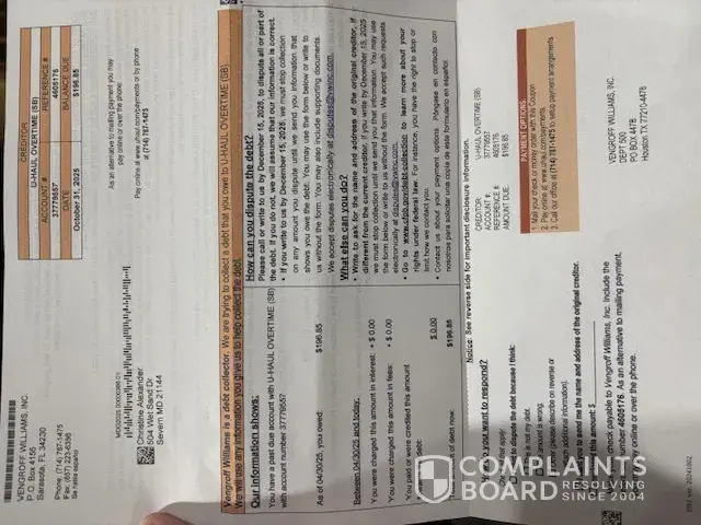 Vengroff Williams - Total mistake on an account from 'uhaul overtime' whatever that is 1