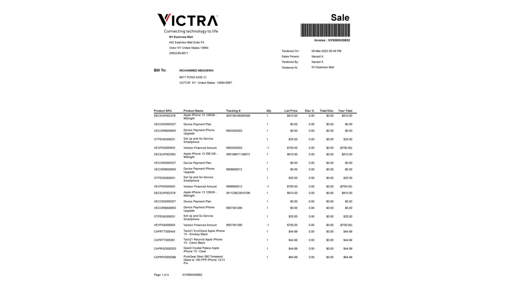 I visited the store in February to inquire about any specials regarding phone plans and rates. The assistant manager informed me that we would be eligible for a $700 discount on each phone that we traded in, and the total monthly for all 3 lines on our family plan would come to $134, a $16 discount from the $150 I had previously been paying. This seemed like a no brainer. We went to the store on 3/5/22, traded in our phones for new iPhone 13s, and with the trade in we were promised a $700 discount on each of the 3 phones. We paid for our 3 new phones and accessories in full at the time, and the total bill came to $949.42. Several weeks later I contacted Verizon regarding a bill we had received as I noticed there was a charge that was not expected. Verizon billed us $300 plus tax because they said the discount on one of the phones should have been $400, instead of $700. However, when they saw that I had paid for the invoice in full on the date of purchase Verizon instructed me to return to the store and request the refund for the $300 bill since I was misled. I went to the store on Monday 4/18/22, and I met with the manager, Mario Small, and he said, "let me check in the computer", and he found out that we paid in full as mentioned earlier, and he apologized and said they should have shared with us that the rebate on one of the phones would only have been $400 as opposed to $700 at the time of sale. He informed me that he was going to contact his manager to process the refund, and he would get back to me the next day. I didn't hear from them for 3 days, and I went back on Friday 4/22/22 and Mario promised he'd get back to me soon as he "expected to hear from his manager on Monday" (4/25/22). Unfortunately, I never heard back. I went back to the store again that week after he was supposed to hear back from his manager, and he said he'll get back to me the following week. At this point it was clear that they were kicking the can down the road and hoping I'd eventually go away. I returned Sunday 5/1 and asked about the status of my refund, and I was told I'd hear back on Monday 5/2. At that point I told Mario that it seems to me there was never any communication with his manager regarding my refund. Mario got very upset and yelled at me to leave the store. I stood there in shock, and he told me that if I didn't leave immediately, he'd call security. At that point I told him to go ahead and call security considering I did nothing wrong, and of course he didn't call security but just walked away from me. Needless to say, I have yet to hear anything in regards to my refund, and it appears that they will be hostile with me if I return to the store. Any help the BBB can provide would be greatly appreciated.