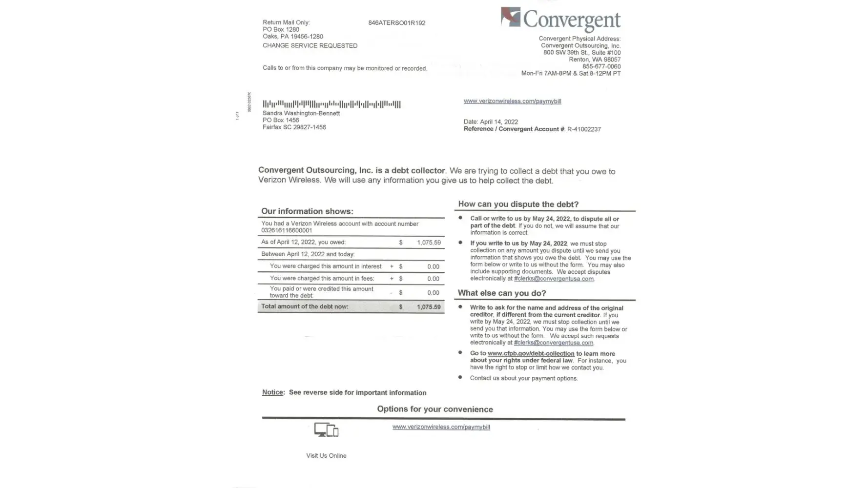 April 15, 2022 – I called Verizon to simply update my auto pay information. I had changed banks and needed to change my checking routing and account number.