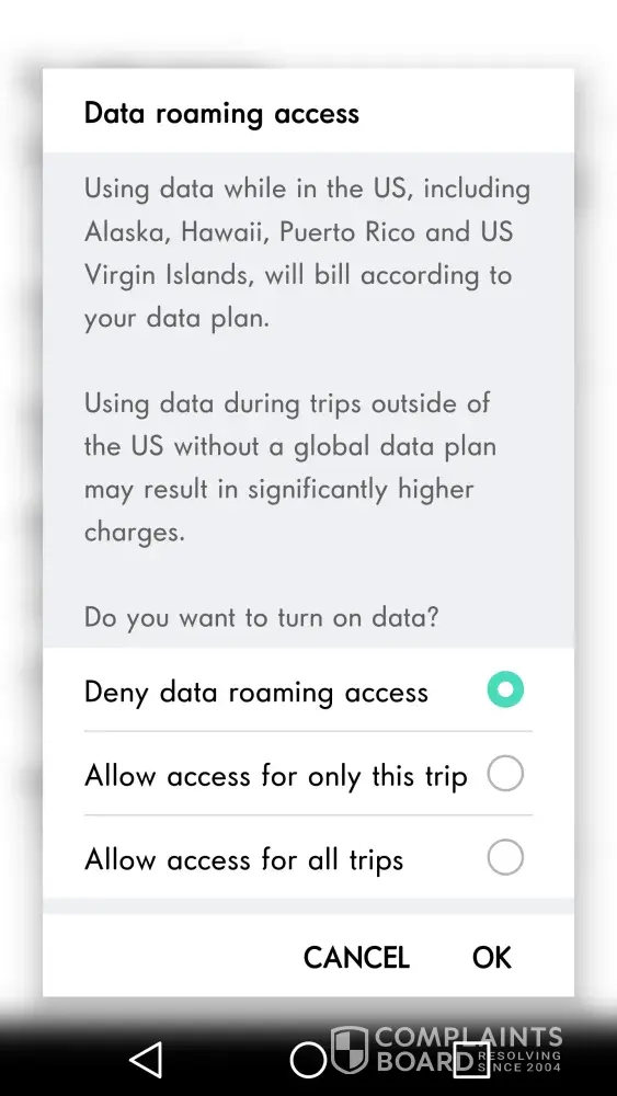 2) Verizon should modify their system so that when a customer makes this setting, "Deny Data Roaming Access", that this does indeed protect the customer from charges for undesired roaming data.