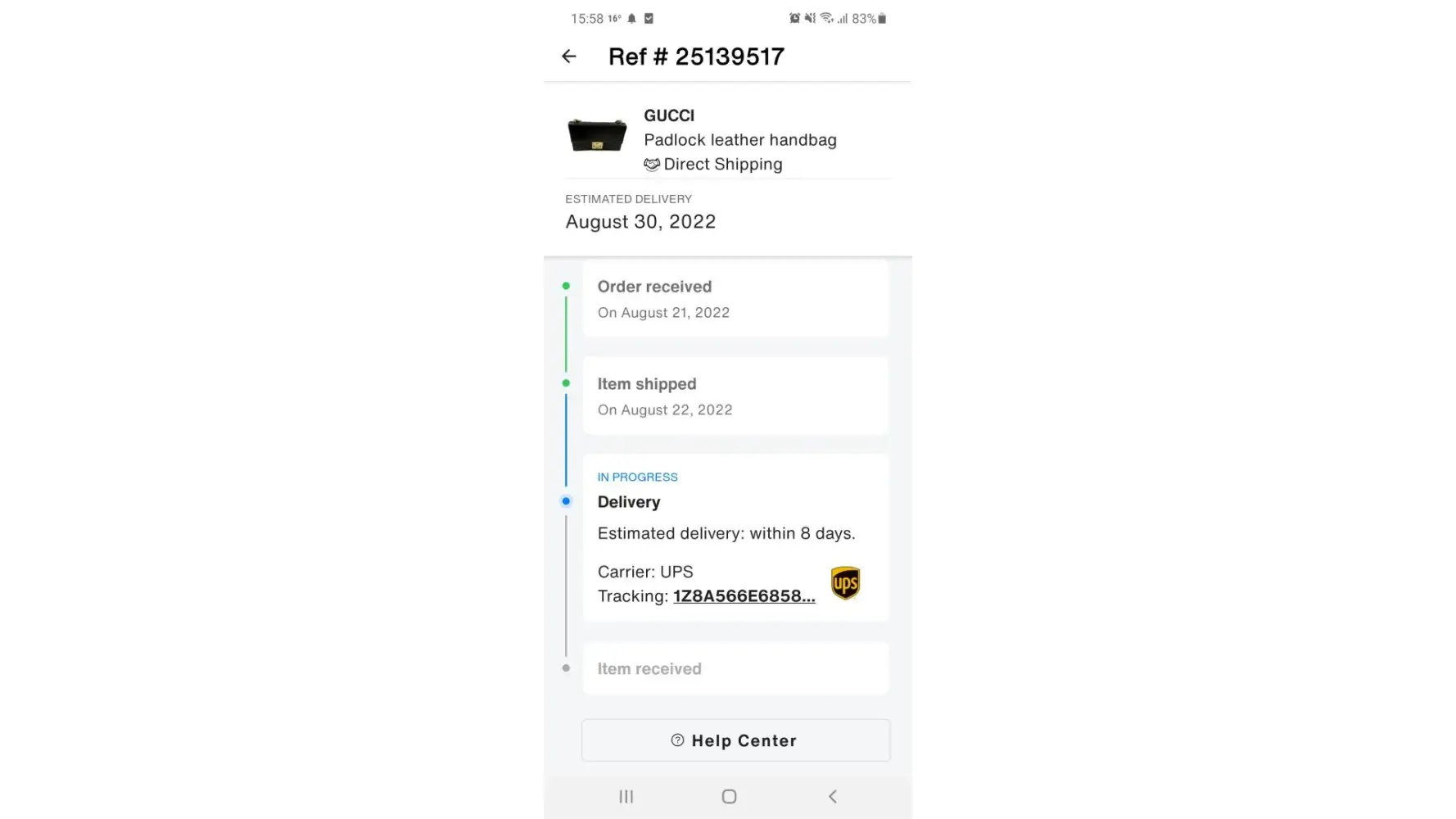 I bought a Gucci crossbody bag on Vestiaire Collective and paid around €500, and the seller claim shipped in on 21 Aug 2022, and provided me a tracking nr but UPS never updated the delivery and I asked for help from VC , and customer lied to me that they contacted seller to open courier investigation, but they didn't contacted the seller and couldn't provide me a prove . And they blocked the chat between seller and I, since the seller told me that VC didn't contact her for progress.