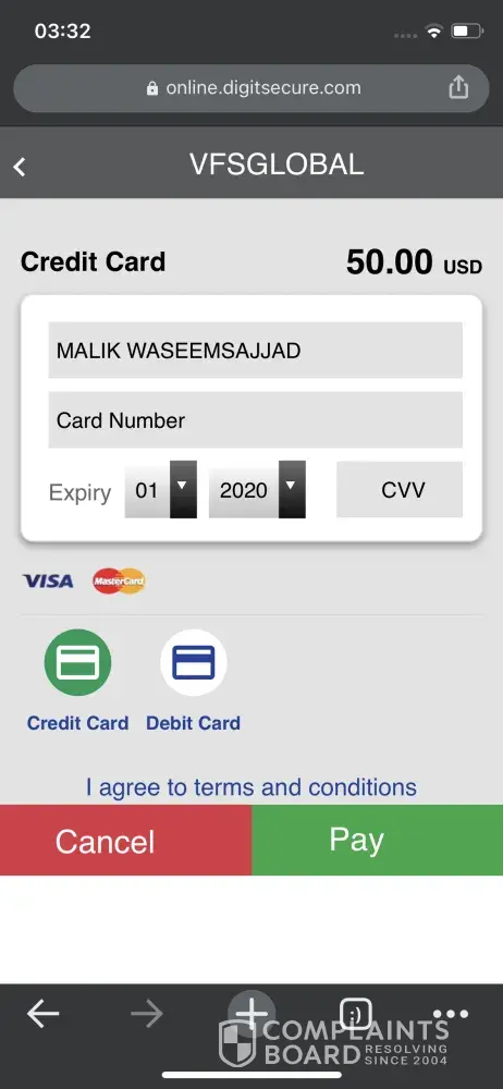 While booking an appointment to submit a visa application at Pakistan for South Africa, booking portal shows an appointment fee of PKR-50 but upon payment though credit/debit card they deduct USD-50 which is a huge difference and they charge hell a lot more.