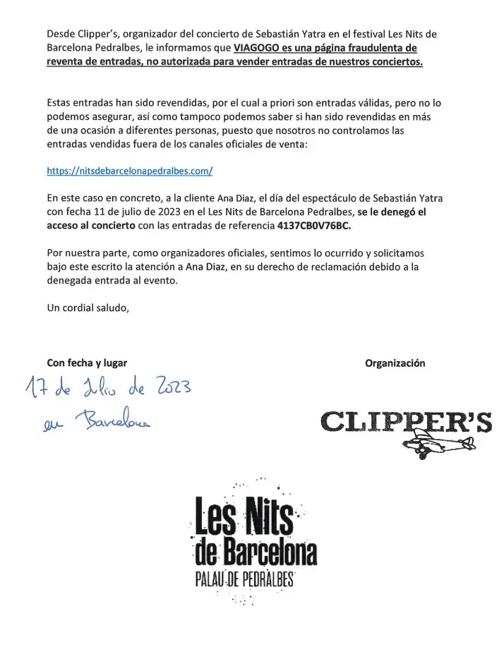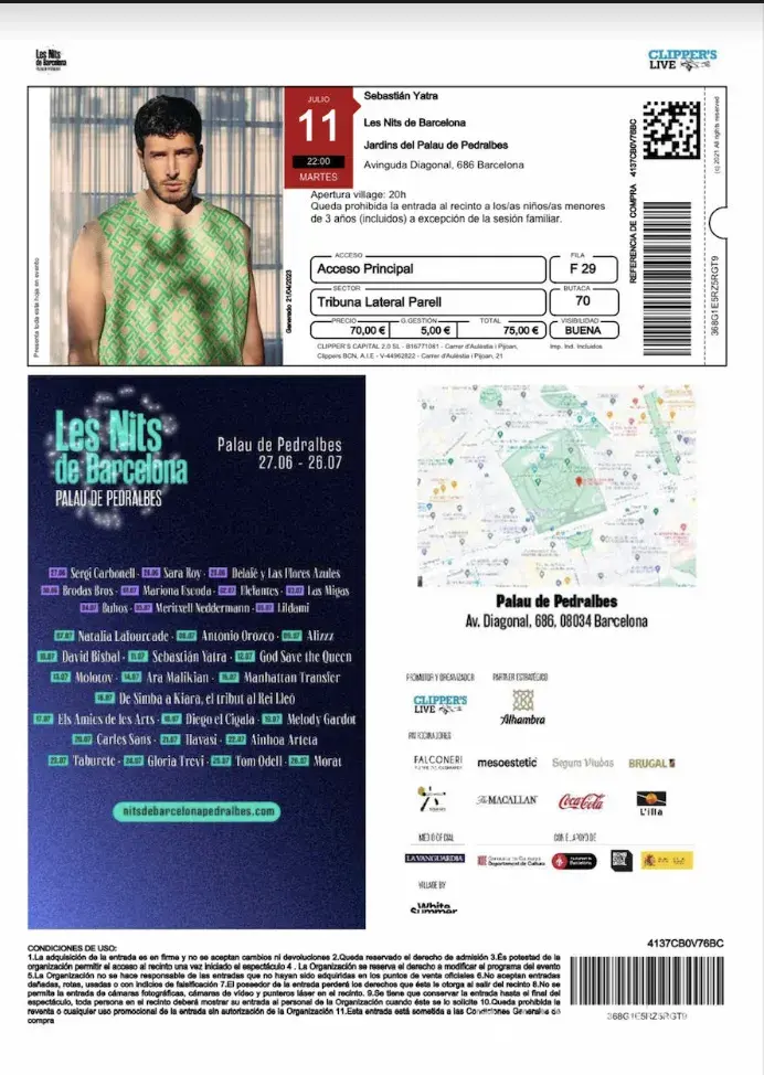 Fraudulent sell to sebastian yatra tickets to a concert in Barcelona