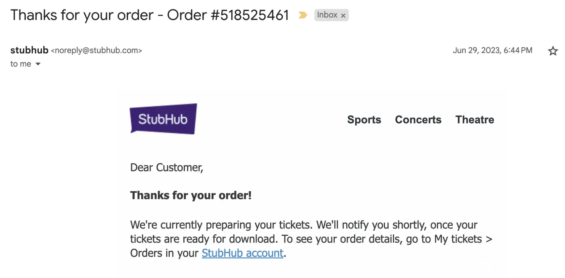 Despite the high cost, I was still looking forward to the concert and began contacting Viagogo about a month before the show to inquire about when my tickets would arrive. They assured me that the tickets would be delivered 1-2 weeks before the show, but I was worried that this was cutting it too close. What if there was a problem?