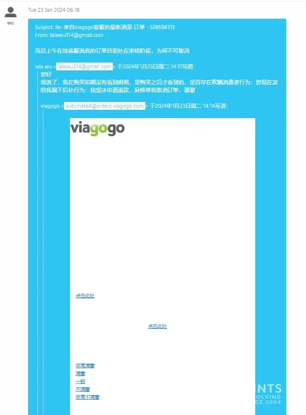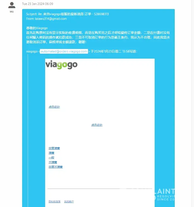 Based on our evaluation, Viagogo has resolved only 0% of 709 complaints, indicating a severe lack of commitment to customer satisfaction, trustworthiness, and responsiveness. This may suggest that the company is apathetic or disinterested in addressing the opinions and concerns of its customers.