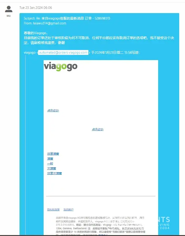 It concerned order *** purchase of tickets for the Porto match. I sincerely advise against it, it is not the official ticket distributor of the Porto club and the club confirmed that it is "fake" and nothing to do with VIAGOGO. Tickets arrived in Lisbon on the day of the event at 14.30 and the match was of course in Porto, despite many contacts that tickets do not exist and should be delivered 3 days before the event or we asked for electronic tickets, they were promised that they would be sent, but they were not sent by the start time. I do not understand such behavior of this company and of course a refund for tickets was written to us that it is not possible. HJ I advise everyone against this VIAGOGO company and I recommend platforms that have contracts for the distribution of events in a given country. This company is a hoot.
