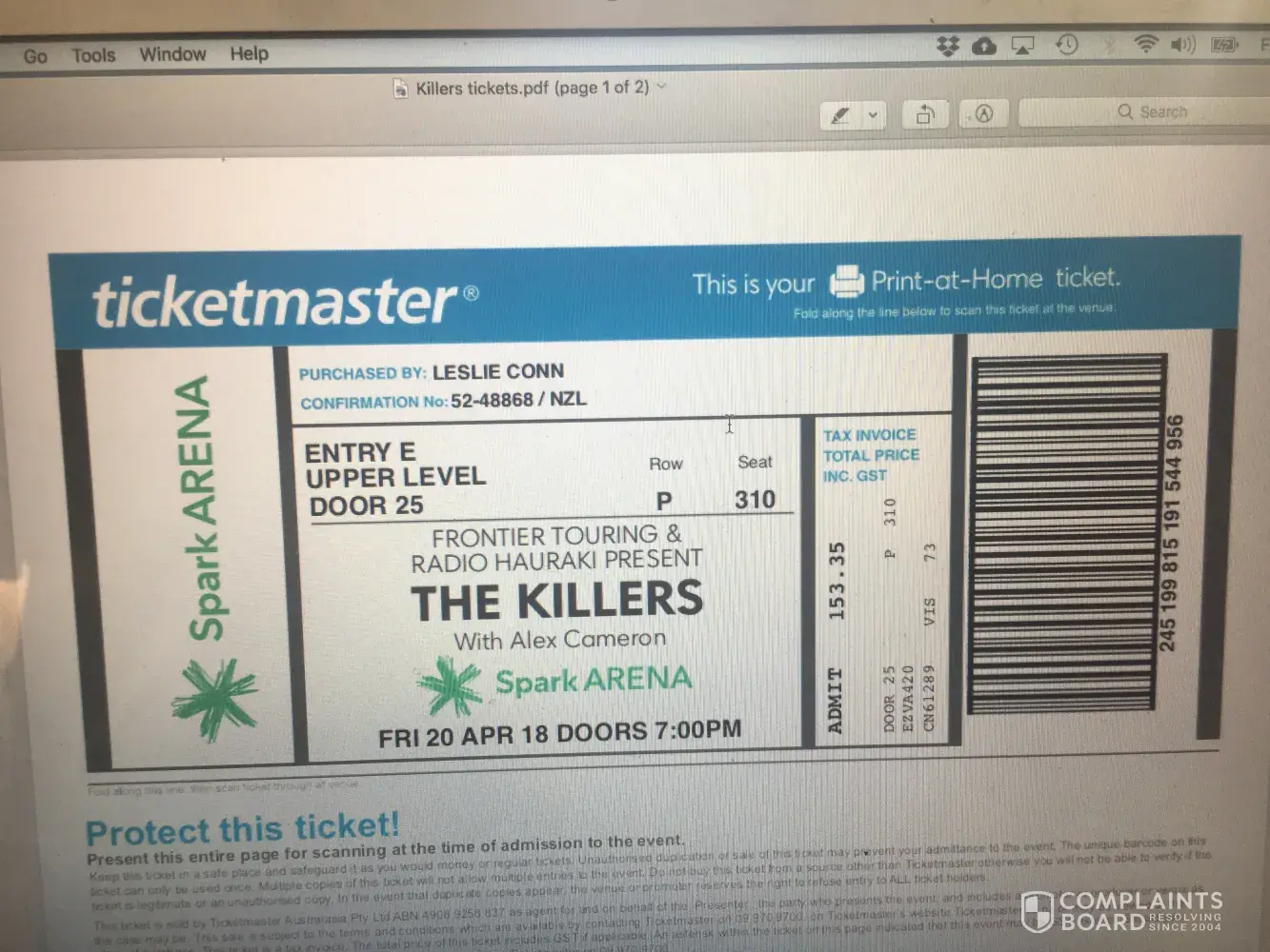 Bought tickets from viagogo for the killer's tickets on the 20th of April.