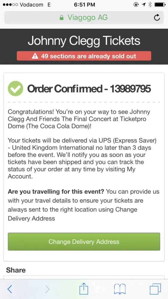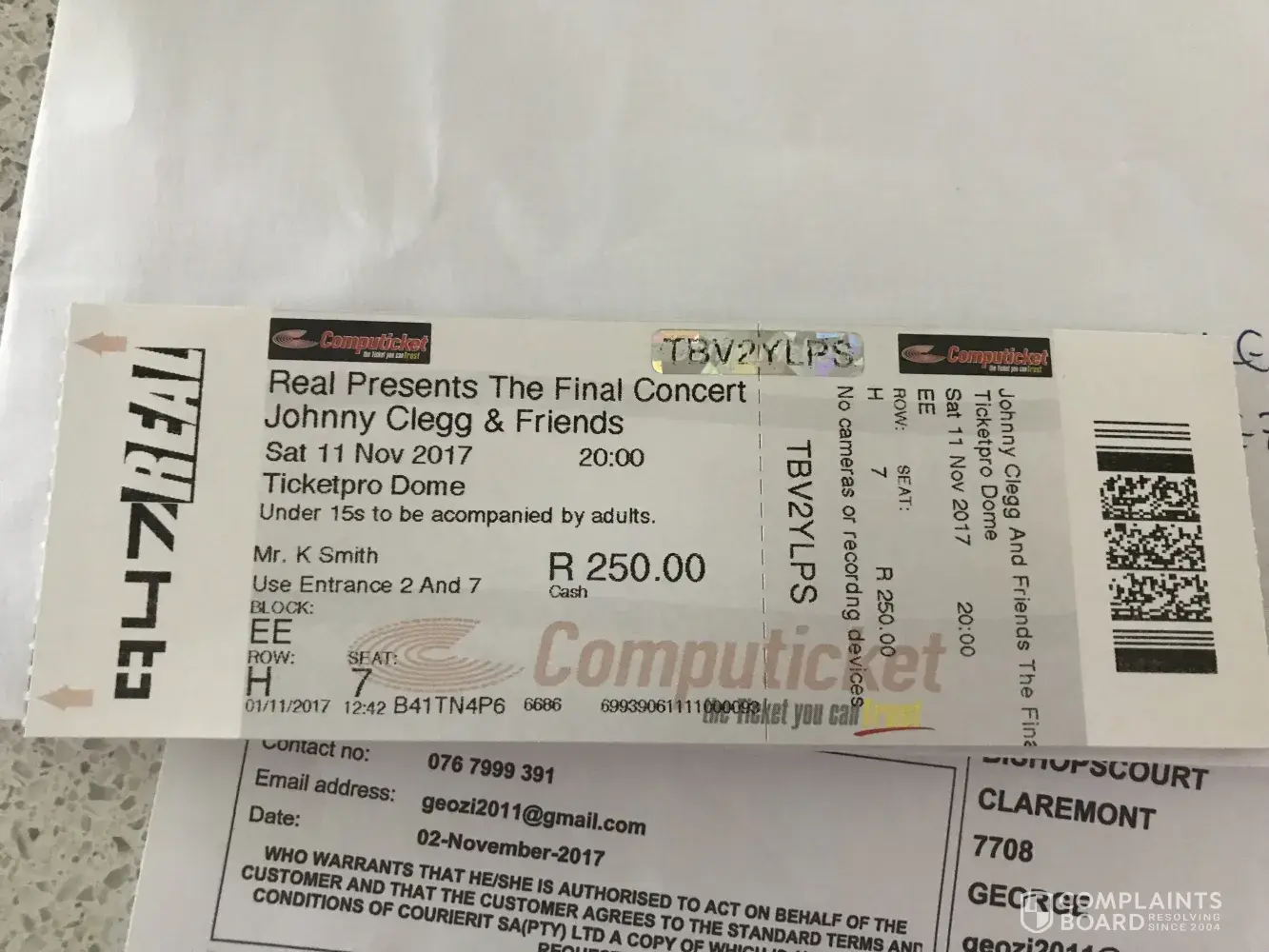 When I googled Johnny Clegg, the viagogo site defaulted as the site of choice. I'd never been on the site but be that as it may, I continued. I was alarmed at the price of the tickets but he is an artist Im extremely keen on seeing. But to make matters worse, on top of the extortionate ticket price, I was charged for a delivery fee and a booking fee. Who in this day and age charges a delivery fee when tickets can be printed at home? I then began sensing that something was untoward. A couple days of the booking, I logged onto the viagogo website to cancel my tickets only to see that I would lose a further R2000. I was in shock as this is surely uncompetitive and I should perhaps seek to bring this up with the Consumer Protection Act ombudsman.