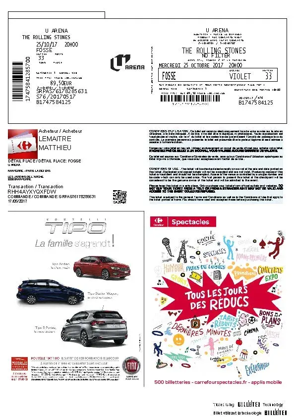 I bought 2 tickets from Viagogo for the 25th of October 2017 for the Paris concert at he U Arena with my credit card (please see attachment).
