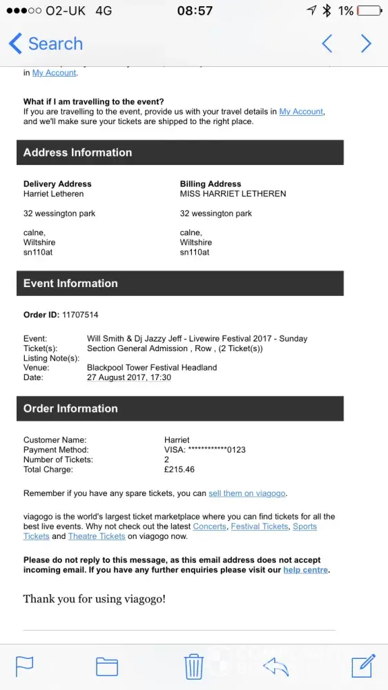 Viagogo - Tickets not received for August 11th - Order [protected] IAAF World Athletics championships London
