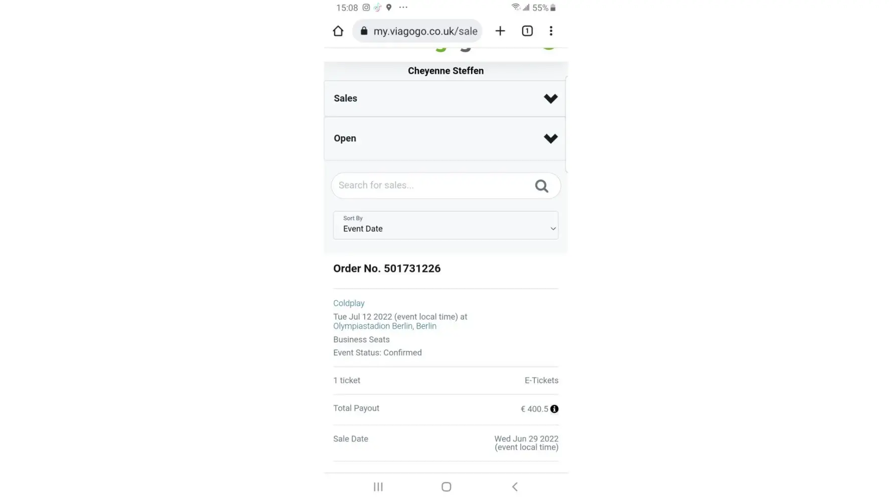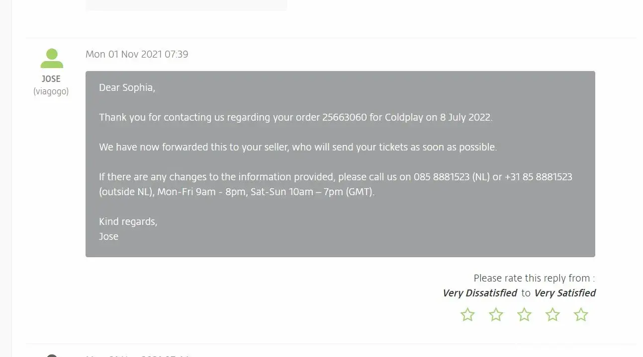 I sold a VIP ticket to the Coldplay concert in Berlin on July 12, 2022 through the Viagogo site. Because it was a VIP ticket, I needed the buyer's name and contact information, which I received. Because of this, I was able to confirm with the buyer that he did attend the concert. Now, Viagogo won't pay me for the sale. I've emailed them several times and left messages on my account but they stopped replying. They are now completely ignoring me. I'm owed 400 Euros.