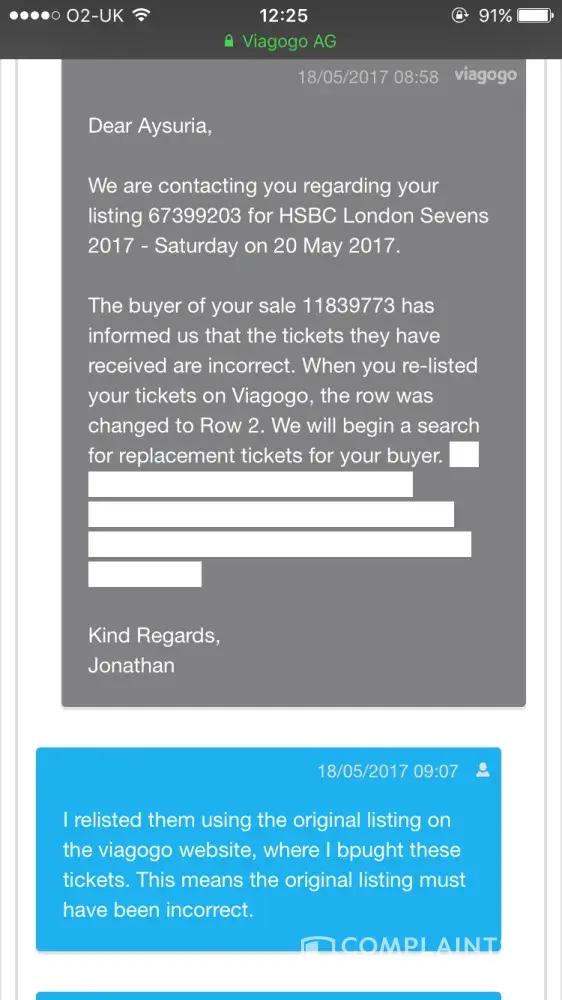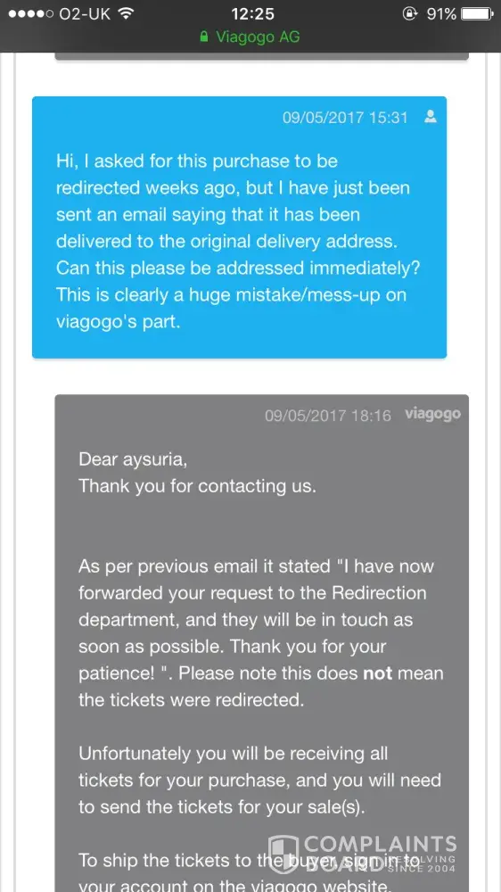 Absolutely outrageous customer service. I bought 2 tickets on viagogo. Tried to resell them and used their "one click listing" service. These were sold and I emailed them asking to redirect the tickets to the new buyer - they agreed to do so.