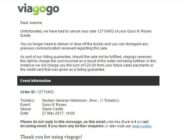 3. Despite sending me an email confirming the tickets are for sale I tried searching throughout the next few days and I could not find them. Viagogo did not put it up for sale therefore I did not get any of my money back!