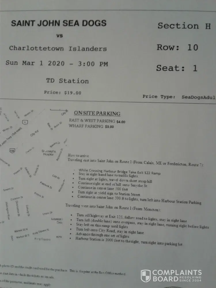 My name is Georgette Roy of Fredericton, N.B. On December 30, 2019, I went on the Internet to purchase 3 tickets to a hockey game in Saint John, N.B., which is about 1 hour from my home. I believed I was on the site from Saint John to purchase the tickets, I had no idea the price of hockey tickets. I was puchasing this for my son and his children. I wa...