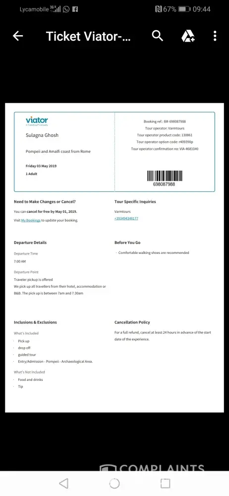 I did contact Viator to advise them of this horrible, disgusting debacle and had difficulty in understanding the speech (accent) of the lady at Viator, although after much patience by both of us, the matter of a full refund was finalised.