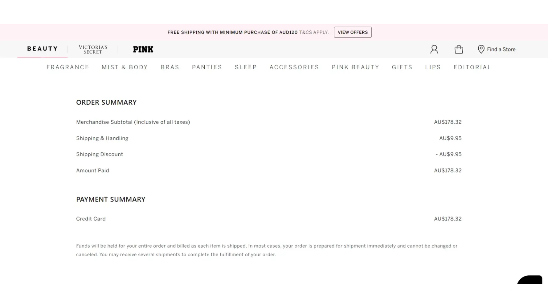 Thank you for choosing Victorias Secret Australia.