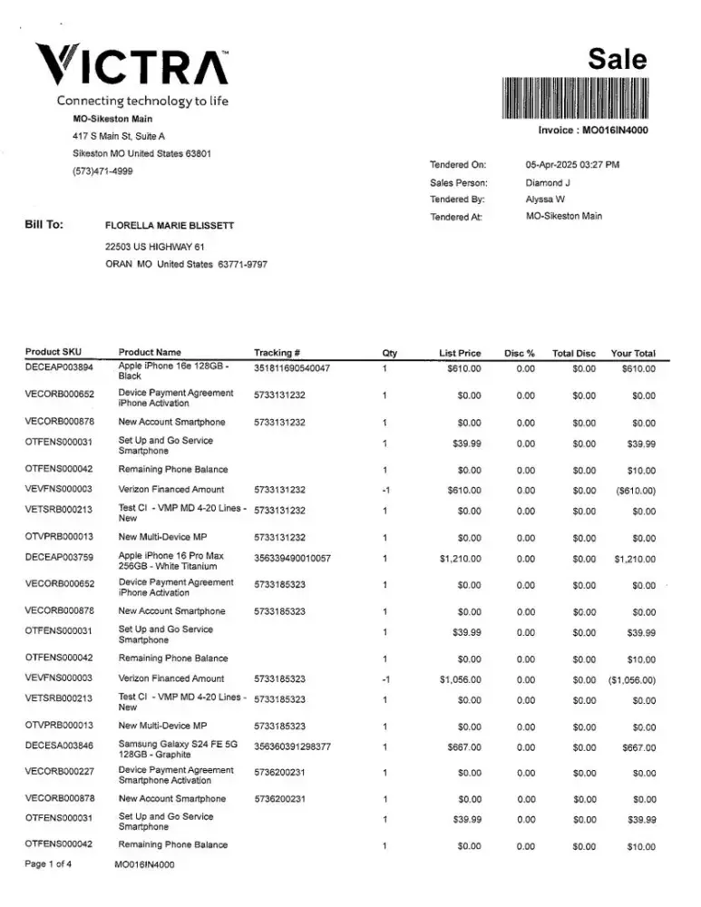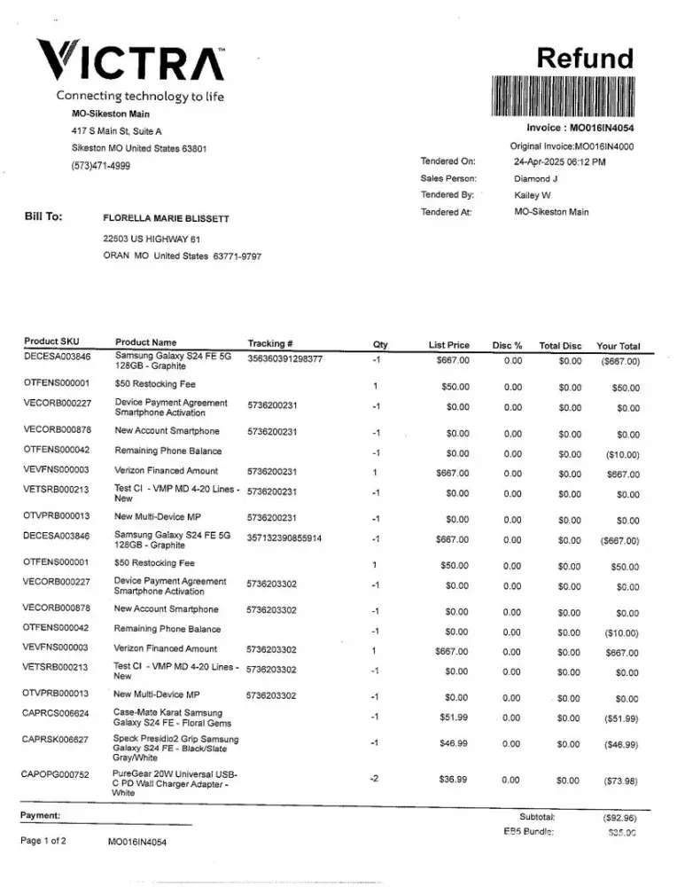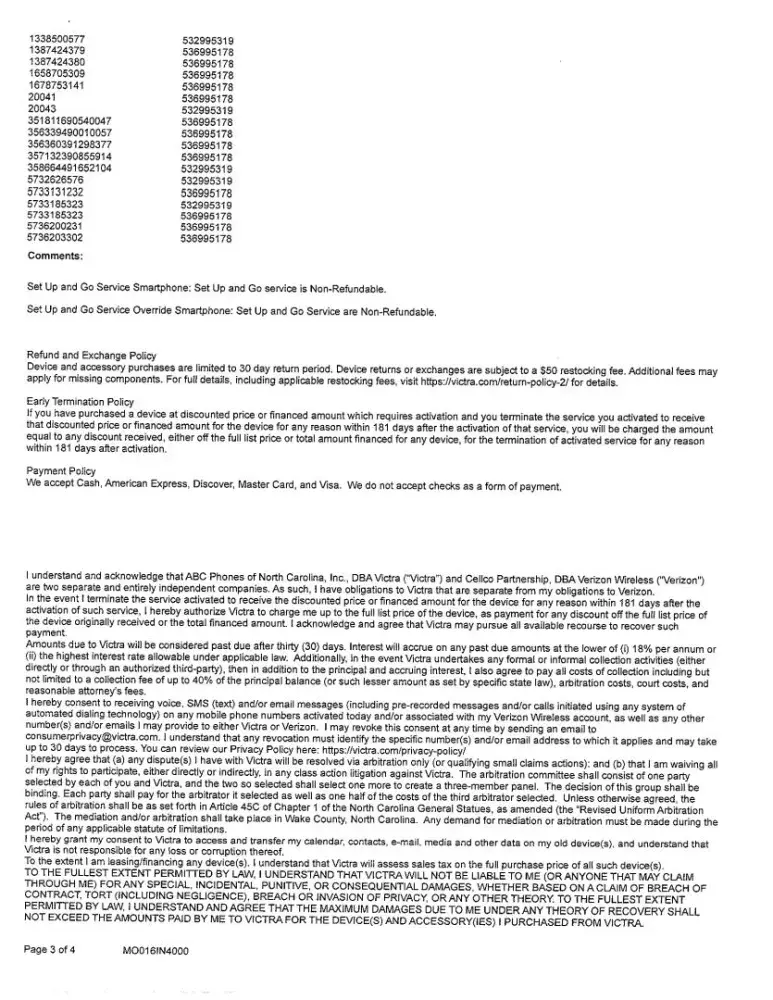 Victra / Diamond Wireless Purchase of an iphone and samsung smart phone