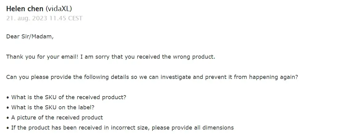 Disappointing Customer Service and Fraudulent Practices: My Experience with Vida-XL on eBay