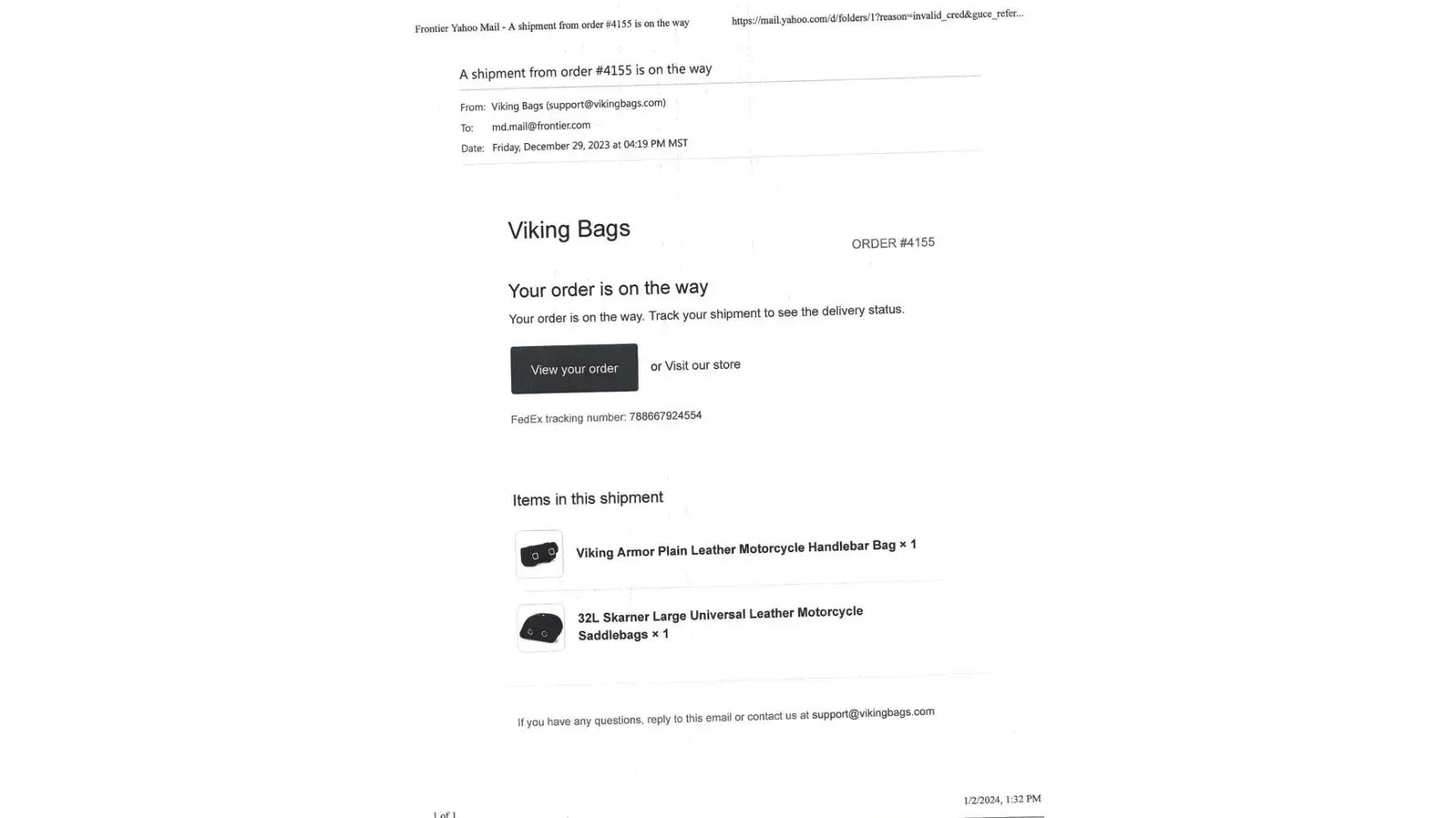 Purchased Viking motorcycle bags, order number: 459808.