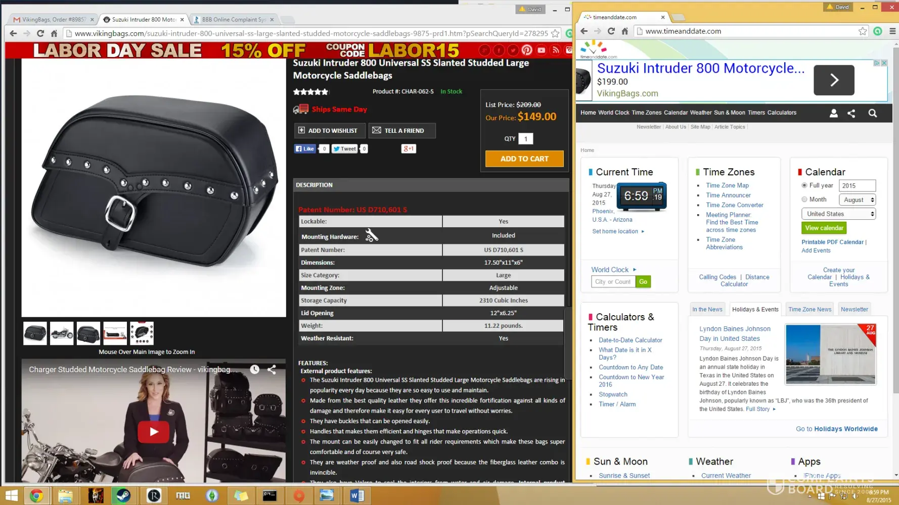 I have never had to go so far as reporting a company to the Better Business Bureau before, but I felt I need to with Viking Bags. Their website was misleading and their customer service representative clearly did not care about the issue. They had an opportunity to grab a lifetime customer by simply owning their mistake and going a little extra to make up for it. They missed the opportunity. I've also been looking through reviews and my problem is not isolated at all.