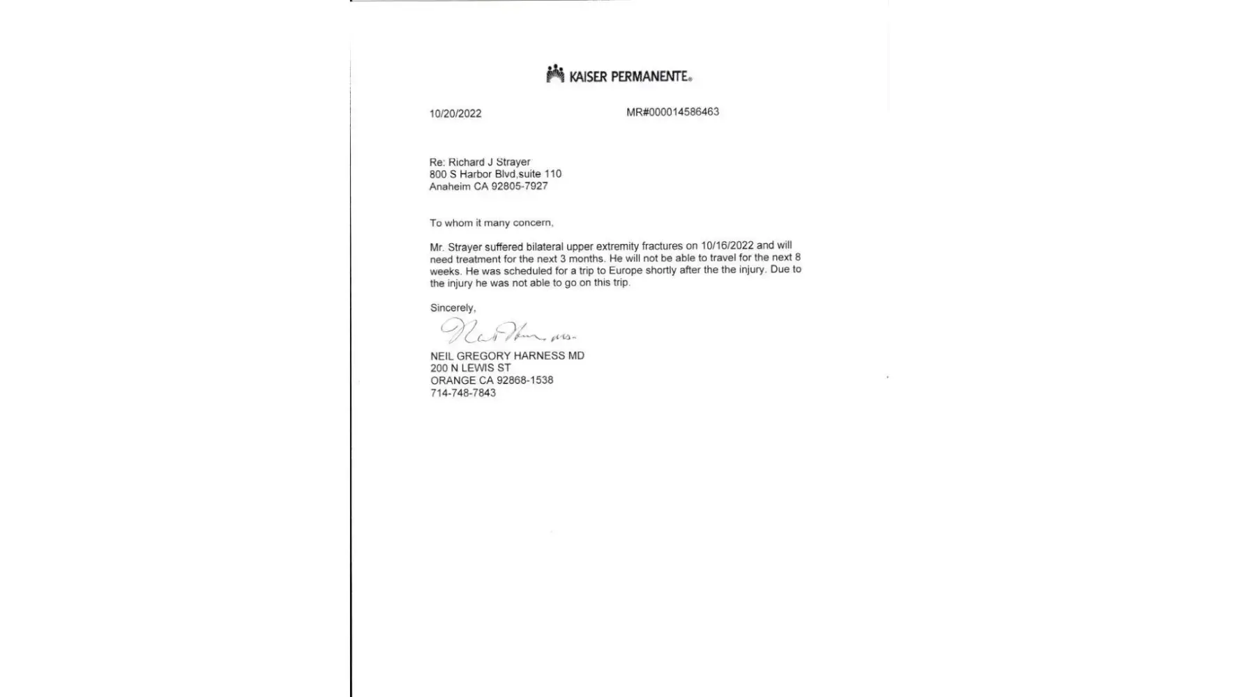 On the evening of Oct 15, I had an accident, and broke both of my wrists, naturally I was unable to travel. I spent all day of Oct 16 in the emergency room.