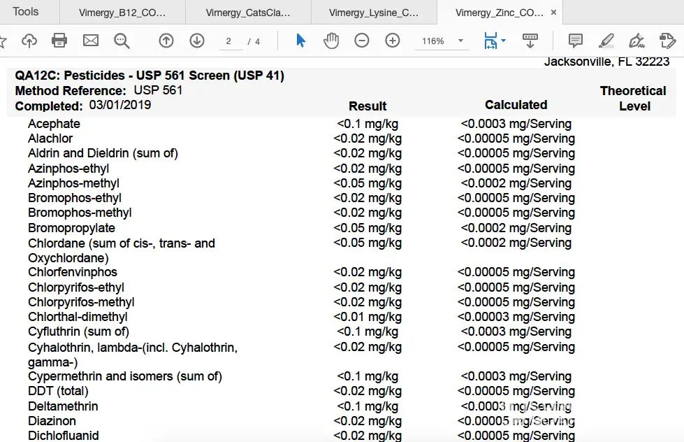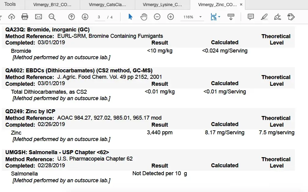 I have tried four of their supplements: zinc, cat's claw, L-Lysine and liquid B12 for only about two month. After about three weeks I started to get zits on most unusual places like the waterline of my eye, my lower lip, and other parts of my face as well as a most usual herpes, which even two months after I have sopped taking them it's still present...