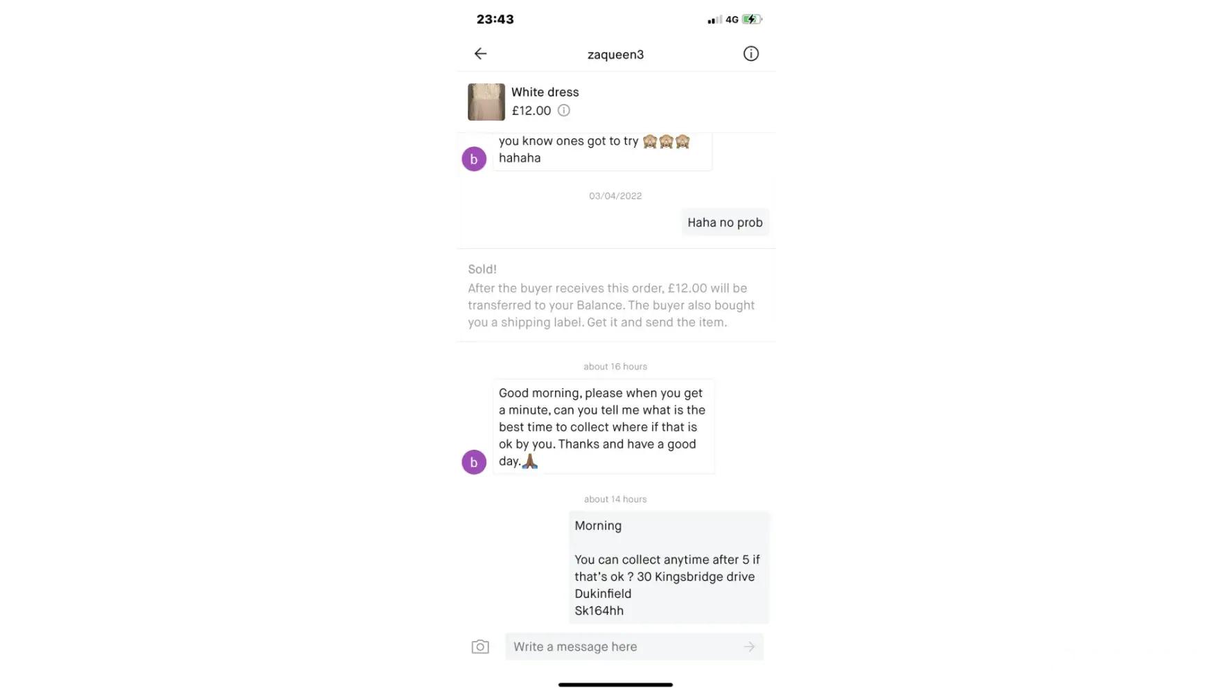 The buyer noticed on her feed from Vinted that the item had been delivered, however this was impossible as she was away.